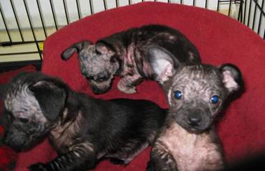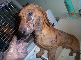 Man couldn't afford flea control and so he had been putting brewer's yeast and flea powder on his dog. Poor dog had an allergic reaction and his hair fell out. We gave a vet visit and provided Frontline for future use. Lady in foreclosure gave us 10 of her dogs when she had to move out of her home. We spayed/neutered everyone, including her own dogs and her sister's dogs. One dog was pregnant and we kept her until after the birth of six beautiful babies. A family member brought in two dachshunds who had been used for breeding and who had mange. One had bad infection over his entire body. It took a long time but his skin eventually did clear up and she was adopted. We called them Handsome and "Great"el.